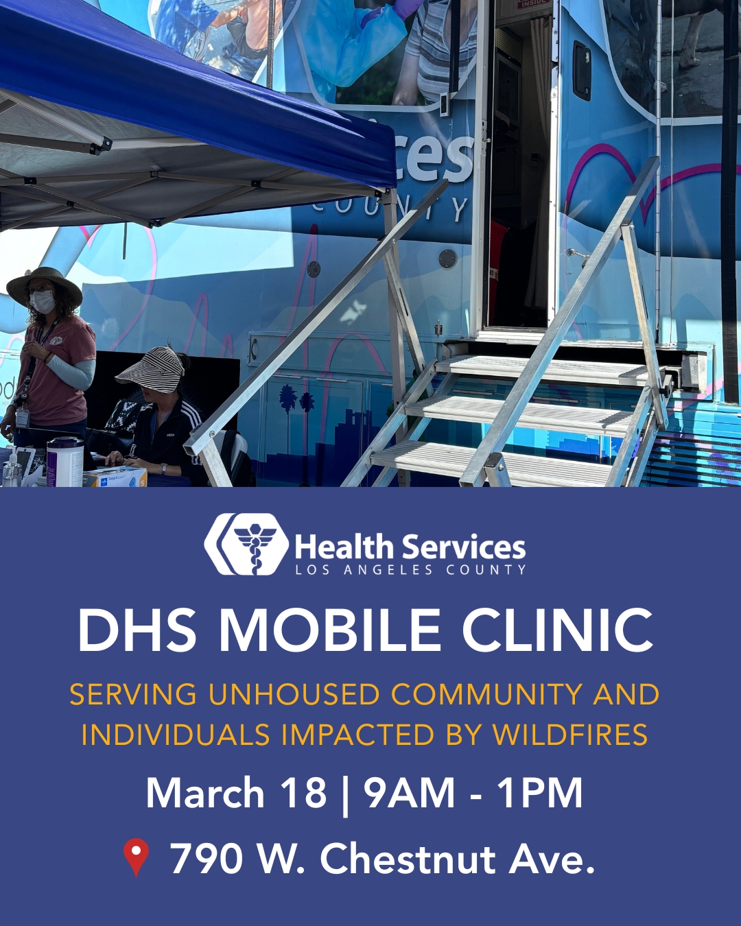 790 W Chestnut Ave, Monrovia, CA, 91016 790 W Chestnut Ave, Monrovia, California, United StatesThe Los Angeles County Department of Health Services Mobile Clinic will be at our Monrovia location Wednesday, March 18 from 9am-1pm to provide services for our unhoused community and individuals impacted by the wildfires. 📍790 W. Chestnut Ave., Monrovia, CA [...]
